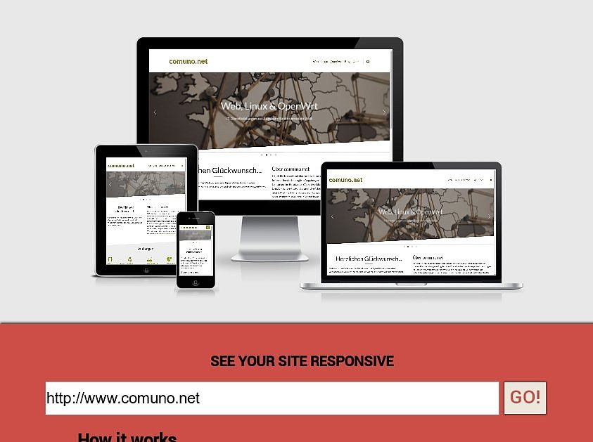Auf der Seite http://ami.responsivedesign.is/ kann eine beliebige Seite (im Internet, aber auch lokal) schnell auf ihre Responsiveness getestet werden. Das ist recht praktisch, um z.B. Kunden eine schnelle Vorschau zu geben, ersetzt aber natürlich nicht ausgiebiges Testen auf verschiedenen echten Geräten.